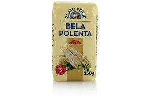 V vrelo vodo zakuhamo koruzni zdrob v katerega pri zgoščevanju zmešamo maslo, da bo polenta bolj rahla.